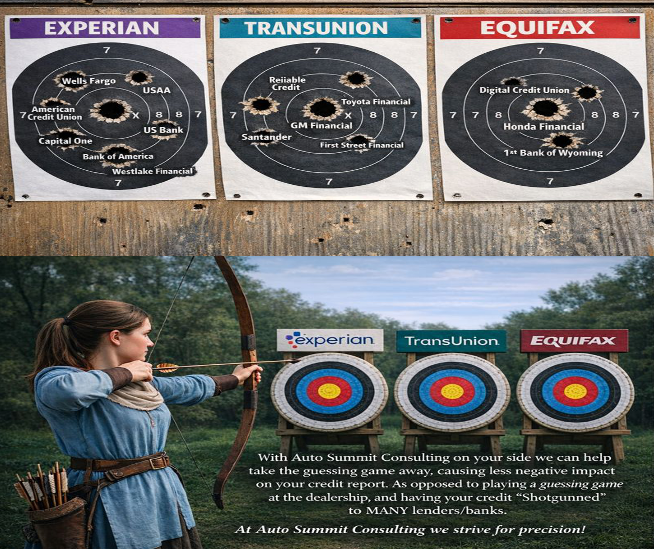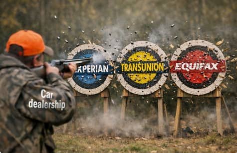 Just like a hunter with a shotgun filled with buckshot, a car dealership shops your credit reports like ( buckshot) as multiple scattered bullets, increasing the chance of hitting/sticking to a bank, optimizing their search if you will. Essentially, they are just waiting to see what will stick (as in what bank will approve the car loan). Not to mention these lenders/banks who partner with the dealerships fight ( in an aggressive bidding war to fund your loan ), although that might sound good, it definitely is NOT good.